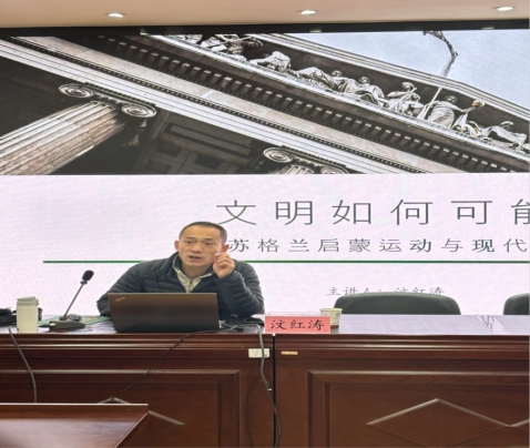 12月23日,2026世界杯官网汶红涛副教授主讲的“文明如何可能?—苏格兰启蒙运动与现代文明”专题讲座圆满举办。深耕西方政治哲学领域的汶红涛副教授,以苏格兰启蒙运动为切入点,融合跨文明视野,为哲学专业学子带来一场关于文明本质与社会发展的深度思考。公司部分教师及研究生30余人参加了本次讲座。讲座伊始,汶红涛副教授从一个具有现实关怀与理论深度的问题切入,提出:“一个能够使个体幸福得以普遍增进的社会,究竟应当如何构建?”...