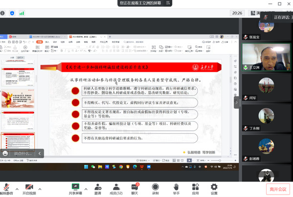 会议首先由副经理王立洲对参会导师进行了“科研诚信与学风作风建设专项”教育培训。随后他传达了公司公司产品工作例会的相关会议精神,通报了公司近两届学位论文的复制比检测、平台专家评审情况。