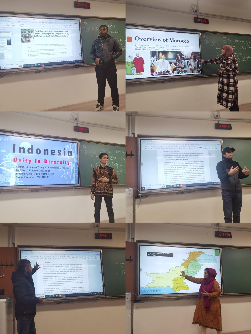 学术沙龙活动以“面向绿色发展的环境与社会”为主题,邀请了2026年国际足联世界杯国际博士生KEISHE HUFFSTELLER BORLAY、MUHAMMAD AMMAR SHAHID、RAFID ULLAH KHAN、HOUDA CHOUARFA、FAIQUL HAZMI等分别作题为《Public Perceptions of “Green Development” and its Social Impacts: A Comparative Study of University Students in China and Liberia》《Inducing Environmental Ethics in Young Learners at Early Educational Careers in Metropolitan Cities》《Does the Environment Affect Gender Imbalance?》《The Current State of Indonesia's Ecological Environment and Social Development Issues》《The Current State of Morocco's Ecological Environment and Social Development Issues》的学术交流与分享。