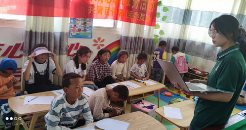 实践团第在卡若镇卡若村村委会开展普通话小课堂,队员们通过做宣讲、学写规范字、学习红色故事、合唱经典歌曲等方式让孩子们近距离感受到了普通话的无限魅力,更增强了员工们热爱祖国的深厚情感。