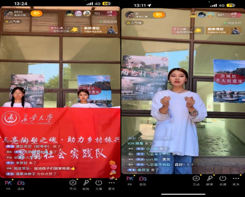 实践队在走访参观的基础之上,设计了针对当地村民、游客及陶艺村工作人员三种不同类型人群的调查问卷,对陶艺村内游客和当地村民进行随机采访。在统计调查问卷结果的基础上,总结现存问题,最终决定以线下宣讲、线上直播的方式加大对陶艺村的宣传力度。实践队员们向前来参观的游客及线上观众普及陶艺知识,宣传陶艺村景区和尧头窑遗址,并邀请观众们跟随镜头云游陶艺村。