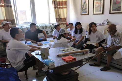 图为实践队员走访94岁退伍军人李英杰老人