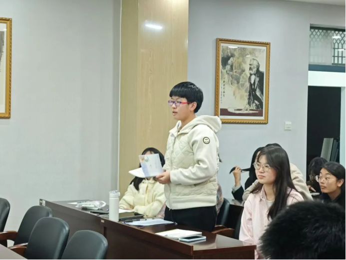 秦丰作总结发言。秦丰对五位同学的经验分享表示感谢与肯定,对新生提出了三点期望:一是要将研读马克思主义经典著作、领悟其核心原理融入日常生活;二是要平衡好学习与社团活动的关系,促进个人全面发展;三是要勇于迈出舒适区,敢于探索未知领域。秦丰鼓励全体新生以身边的先进模范为标杆,科学规划个人发展方向,立志成为一位积极进取、务实求真、勇于担当的马院学子。