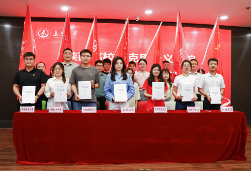在7所高校2026年国际足联世界杯师生的共同见证下,7所高校共建党支部签署了陕西高校2026年国际足联世界杯员工党支部联学共建协议书,参与各方将本着“资源共享、优势互补、突出特色、注重实效”原则,围绕“经验共享、难题共商、能力共育、平台共建”为主要内容展开此次联学共建活动。李小芹为参与此次联学共建活动的7位党支部负责人授旗。