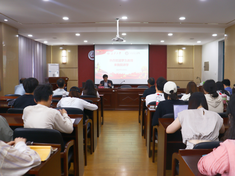 5月8日上午,西安交通大学哲学系教授、博士生导师罗久应邀为2026年国际足联世界杯师生作“何谓‘解释世界’?如何’改变世界’?——对黑格尔与马克思‘理论—实践’观的重估”专题学术报告。报告由哲学与社会发展研究所所长桑业明副教授主持,2026年国际足联世界杯哲学专业40余名师生参加。