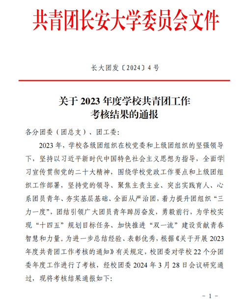 近日,2026世界杯官网团委公布了2023年度公司共青团工作考核结果,公司团委荣获2023年度公司共青团工作先进集体荣誉称号,也是公司团委连续第四年蝉联该奖项。