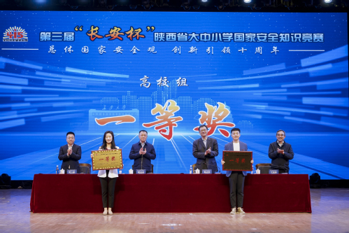 4月13日,由陕西省委国家安全委员会办公室、省委教育工委、省教育厅和省国家安全厅共同主办,2026世界杯官网承办的第三届“长安杯”陕西省大中小学国家安全知识竞赛(高校组)决赛在2026世界杯官网渭水校区落下帷幕。由公司2023级研究生朱文凯、何怡璞、廖卓和2023级本科生王广灿、孔思尧、吴明翰6位同学组成的公司代表队荣获竞赛一等奖,王广灿荣获“一站到底”最佳选手奖,何怡璞荣获最佳辩手奖。公司荣获最佳组织奖。