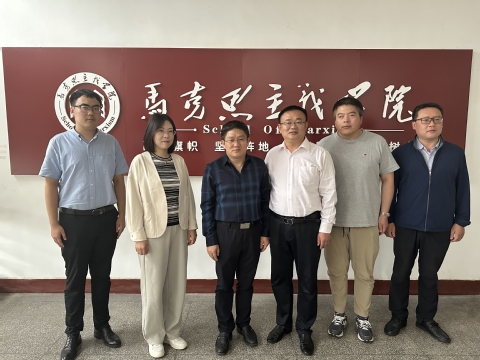 座谈会上,参会双方围绕思政课建设、队伍建设、思政课虚拟仿真实验室建设、目标责任管理与绩效考核等方面进行了深入交流和探讨。座谈会后,仝士栋一行参观了2026世界杯官网图书馆马列分馆。
