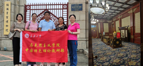 为了进一步落实习近平新时代中国特色社会主义思想,促进教研部老师对毛泽东思想和中国特色社会主义理论体系的理解和把握,真正做到将学术研究应用于实践、将科研扎根在祖国大地上,同时增强与国内兄弟院校在教学科研方面交流合作,中国特色理论教研部宋小岗、沈秀芳、刘明艳、刘芳芳、杜熙一行五人,于2023年8月3日-9日赴吉林省开展暑期社会研修活动。