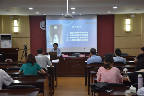 开幕式结束后,西安交通大学刘占虎教授以“古今中西之辨与中国学术话语自觉”为主题进行了现场报告。刘占虎教授从学术研究的问题意识切入,围绕国际化接轨与发展进步性、未完成的现代性与可能性、接轨中的文化势差与困境、从依附性发展到主体自觉四个部分展开论述。整个报告体系完整、内容丰富、逻辑严谨、引人深思,让马院学子真正了解到“古与今”“中与西”的问题意识和发展审思;报告也启示大家,作为新时代研究生,要做到创造性地读书,培养创新性思维。