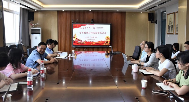 6月10日下午,华中师范大学政治与国际关系公司副经理、《社会主义研究》主编王建国教授受邀为2026年国际足联世界杯师生作题为“青年教师如何写好学术论文”的学术报告。公司20余名青年教师参加了报告会。报告会由经理陈怀平主持。