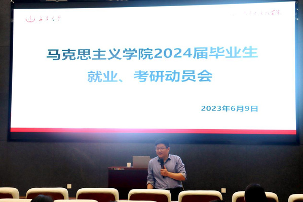 杨帆介绍了就业相关政策要求,分享了公司近五年来员工就业、考研情况,针对2024届员工考研就业意向进行了具体指导。