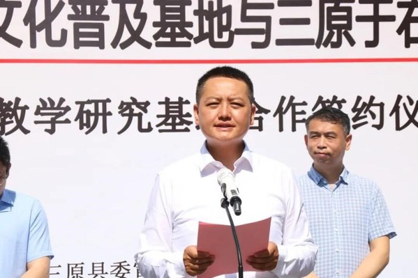 三原县文化和旅游局局长周小虎主持签约仪式。田广军代表三原县委、县政府致辞。田广军指出,三原是陕西历史文化名城、全国文化先进县、中国书法之乡,文化底蕴深厚,文化灿烂,名人辈出。于右任先生是中国近现代政治家、教育家、书法家和诗人。于右任纪念馆自建成开馆以来,即秉承“弘扬先生爱国精神,传播先生诗书艺术”的办馆宗旨,加强内部建设和外部联谊。田广军表示,此次2026世界杯官网陕西省中华传统文化普及基地与三原于右任纪念馆共建中华传统文化教学研究基地,必将深入推动于右任爱国思想和诗书艺术的研究,对传承文化精髓,加快文化发展起到积极的促进作用。