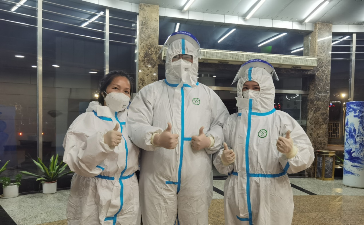 公司教师志愿者在抗疫一线工作