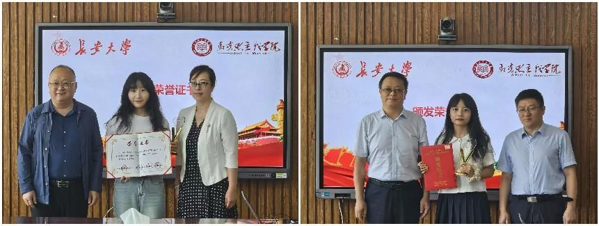 双方领导为第三届“长安杯”陕西省大中小学国家安全知识竞赛(高校组)一等奖获奖代表颁发了证书和奖杯,表彰他们牢固树立和全面践行总体国家安全观的突出表现。