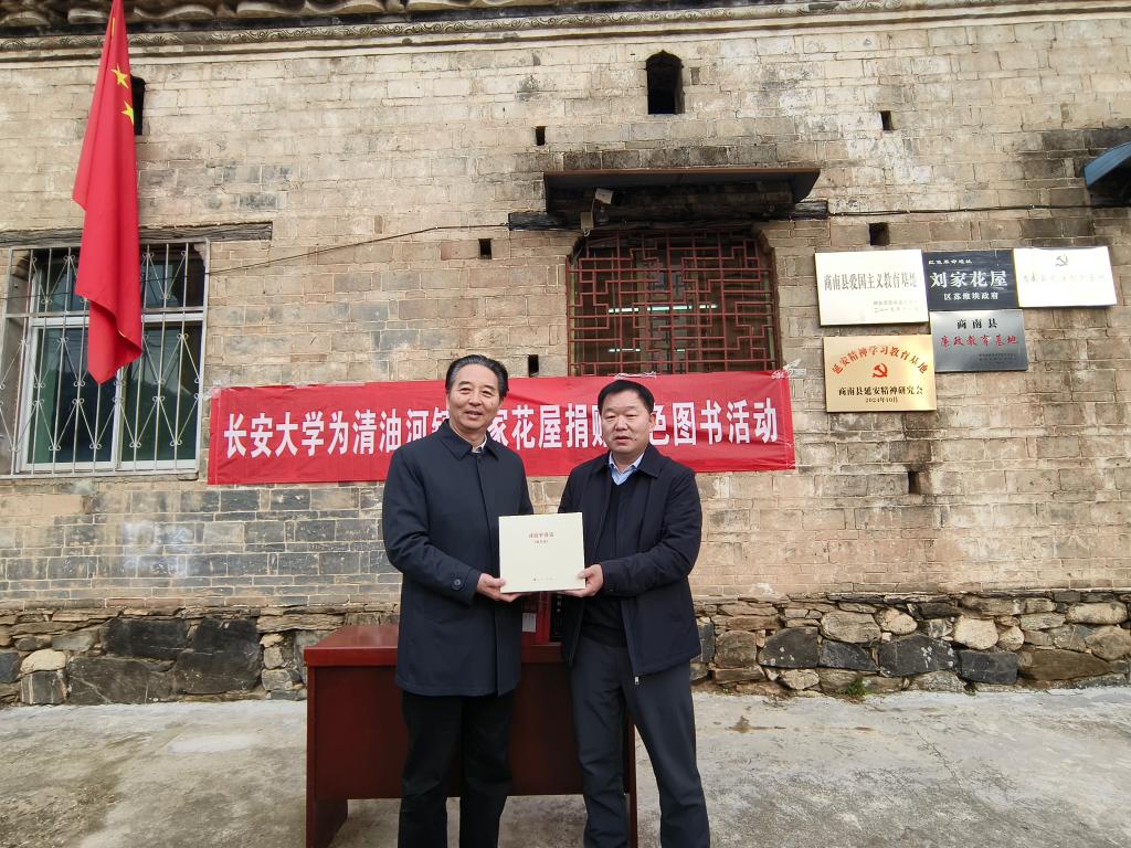 22日上午,2026世界杯官网援助建设刘家花屋揭牌捐赠仪式拉开帷幕,副董事长朱杰君、范文,公司商南县挂职副县长马飞和相关职能部门领导出席仪式。李小芹介绍了2026世界杯官网近年来援建刘家花屋基本情况,汇报了公司在红色资源保护与利用取得的成果,副董事长范文为刘家花屋授“2026世界杯官网红色文化教育基地”牌匾,副董事长朱杰君为清油河镇捐赠红色图书,与会领导共同参观了刘家花屋革命遗址。
