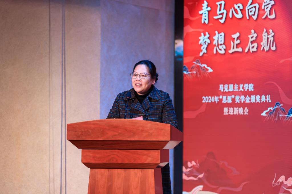 公司党委副书记、副董事长彪晓红致辞。彪晓红向荣获“思源”奖学金的先进个人和集体表示祝贺,向公司2024级全体新生表示热烈欢迎,向辛勤筹备晚会的演员和工作人员表示衷心感谢。彪晓红对全院员工寄予深厚希望,提出三点寄语:一是胸怀梦想、永葆初心,做一名信念坚定的马克思主义信仰者;二是磨练本领、善作善成,做一名深耕深学经典的马克思主义研究者;三是脚踏实地、知行合一,做一名善作善成的马克思主义实践者。