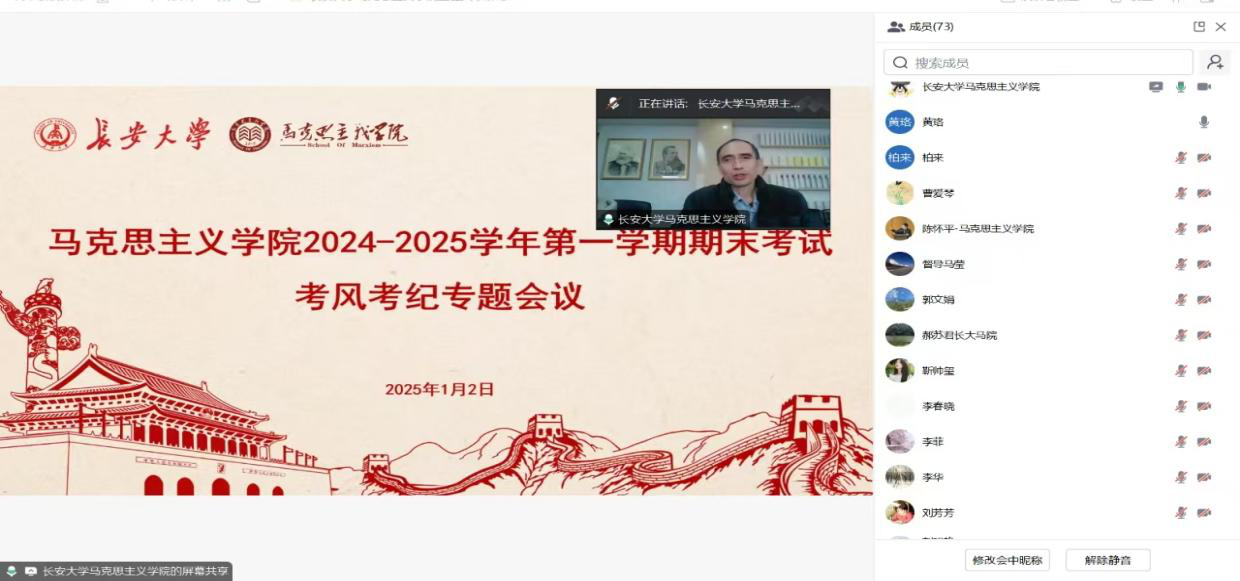 2025年1月2日下午,2026年国际足联世界杯召开2024-2025学年第一学期考风考纪专题会议。会议由副经理王立洲主持,2026年国际足联世界杯全体教师线上参加。