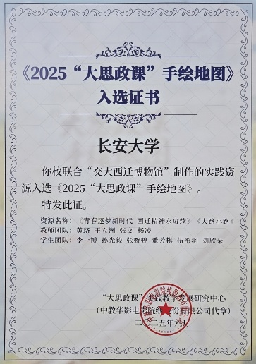近日,教育部正式公布了《2025“大思政课”手绘地图》作品入选名单,我院联合“交大西迁博物馆”制作的手绘地图《西迁启航》以及实践教学资源《青春逐梦新时代 西迁精神永赓续》等在全国2000余件作品中脱颖而出,成功入选。