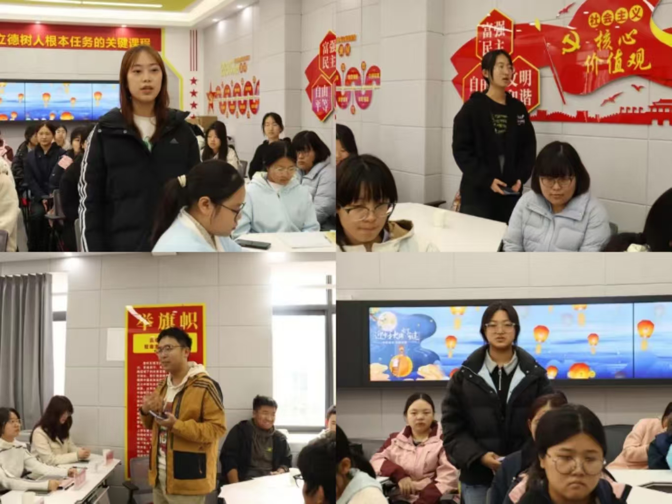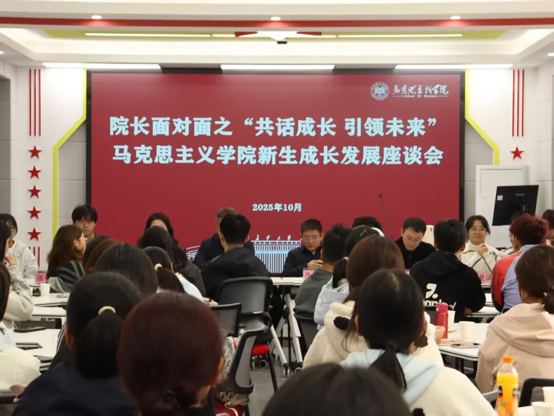 师生交流互动环节。同学们结合自身学习生活实际,分别围绕经典著作研读、职业生涯规划、自我认知提升、学习成效评估、信息获取优化等方面提出成长困惑。与会师生就个人成长发展过程中遇到的困惑进行了深入交流与多角度探讨,为新生适应老员工活、明确发展方向提供了有益指导。