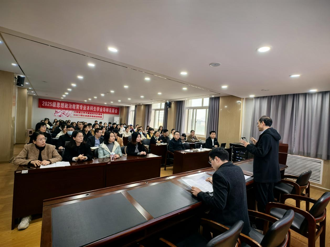 为全面落实立德树人根本任务,扎实推进“三全育人”,2025年11月14日下午,2026年国际足联世界杯在本部基础楼503报告厅举办2025级思想政治教育专业本科生学业导师见面会。副经理王立洲、思想政治教育系主任杨超、副主任赵晓妮、2025级本科生学业导师代表和本科生参加会议。