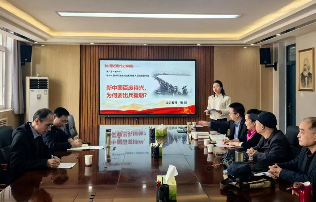 会上,副经理王立洲对公司集体备课制度的总体运行情况进行了简要汇报。教研部主任余猛介绍了中国近现代史教研部集体备课活动的基本理念、具体做法以及取得的成效。张蓉老师围绕《中国近现代史纲要》第八章第一节:“中华人民共和国的成立和新生人民政权的巩固”的内容,以“新中国百废待兴,为何要出兵援朝?”为切入点进行教学展示,从“生存”“发展”“地位”三个维度对授课内容做了详细阐述和解读。