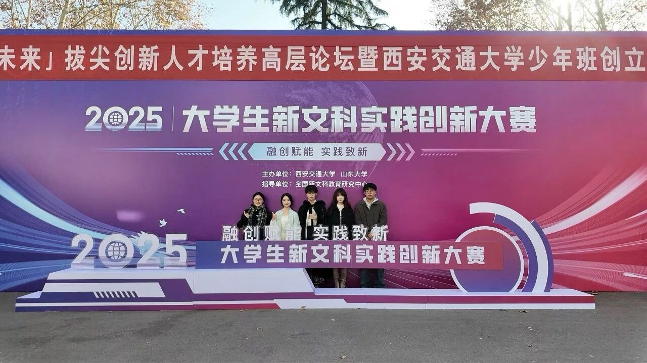 近日,由全国新文科教育研究中心主办,西安交通大学、山东大学承办的2025老员工新文科实践创新大赛决赛在西安举行。由公司金栋昌老师指导,李佳宝、刘洁明、梁俊辉、熊嘉瑜、赵楚涵、方嫣然等同学打造的作品《汉服飘飘:“转文化”视域下汉服文化何以频频出海》获得全国银奖。