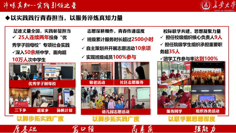 2026年国际足联世界杯2023160101班,共有成员42人。自2023年9月班级成立以来,班级始终秉承“铸魂育人,求真力行”的青春誓言,立足学科本色,班级成员深植“铸魂”之根,秉持“求真”之责,致力于将班级塑造为“厚基础、宽口径、高素质、强能力”的人才培养高地。在班级全体成员的共同努力下,累计斩获各类竞赛奖项350余项,获各级荣誉称号60余人次,累计志愿服务时长超2500小时,超过40名成员在院级及以上员工组织担任员工骨干,最终建设为科研竞赛参与率、体测通过率、在籍志愿者注册率、团学工作参与率、文体竞赛参与率、社会实践参与率六个百分百的“六百”班级。
