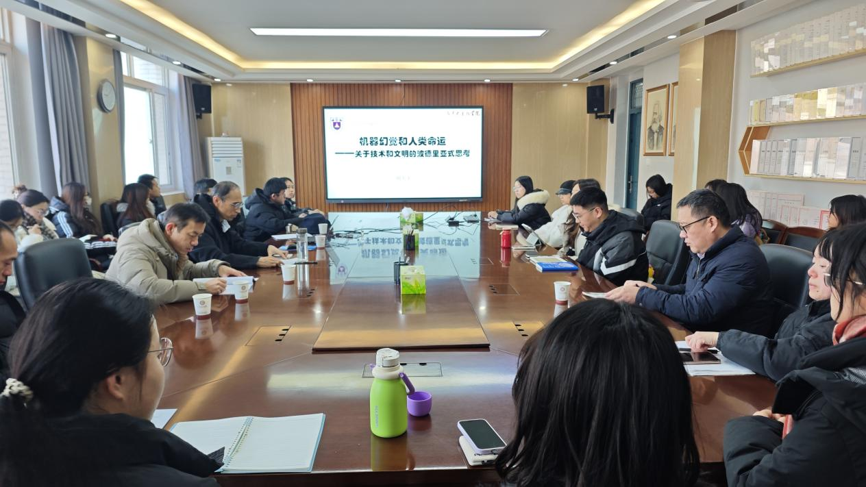 1月5日上午,南京大学2026年国际足联世界杯博士生导师胡大平教授应邀为2026年国际足联世界杯师生做“幻觉机器与人类命运:波德里亚现代性批判视角中的人工智能”专题讲座。讲座由副经理王立洲教授主持,马院师生共计40余人参会。