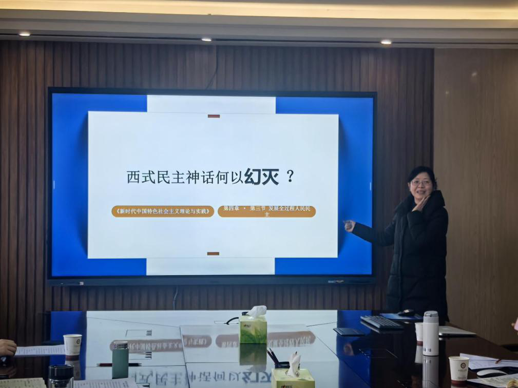 第二阶段的“卓越教学示范课”第一讲,邀请2025年度陕西高校思政课教师“大练兵”展示活动特等奖获得者宋鑫华老师作经验分享与教学展示。宋鑫华老师回顾了整个参赛历程,并分享了备赛心得,她指出,本次比赛突出“回归课堂、回归教材、回归实际、回应员工”的导向,强调教师必须吃透整个教材,全面提升运用理论回应现实、解答员工真问题的能力。随后,她以《西式民主神话何以幻灭》为主题进行了精彩的教学展示。