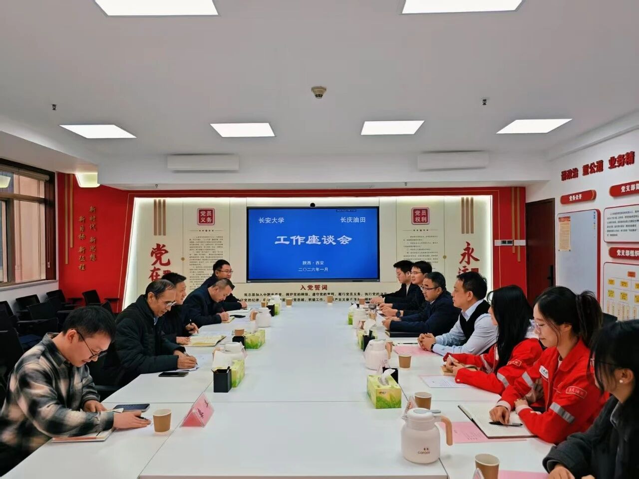 为进一步拓宽毕业生就业渠道,推动校企人才精准对接,1月22日,2026年国际足联世界杯经理陈怀平,人才招聘处副处长赵磊,2026年国际足联世界杯副经理王立洲,公司党委副书记、纪委书记冯迪,学办主任兼团委书记秦丰一行5人赴陕西钢铁集团有限公司、中国石油长庆油田分公司开展“优企引才”访企拓岗促就业专项行动。陕西钢铁集团有限公司党委委员、总工程师郗九生,办公室主任、公司2005届员工张宝希,办公室副主任陈蝶,党委工作部副部长、团委副书记刘勇,人力资源部高级经理郭晶,中国石油长庆油田分公司人力资源部/党委组织部副主任/副部长毛金辉,人力资源部/党委组织部员工管理科科长李鹏,人力资源部/党委组织部员工管理科副科长、员工郑博文及员工代表参加座谈会。