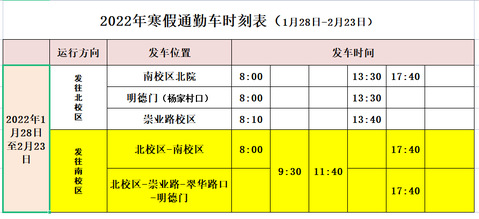 根据公司工作安排,于1月28日起执行2022年寒假通勤车时刻表(详见附件)。